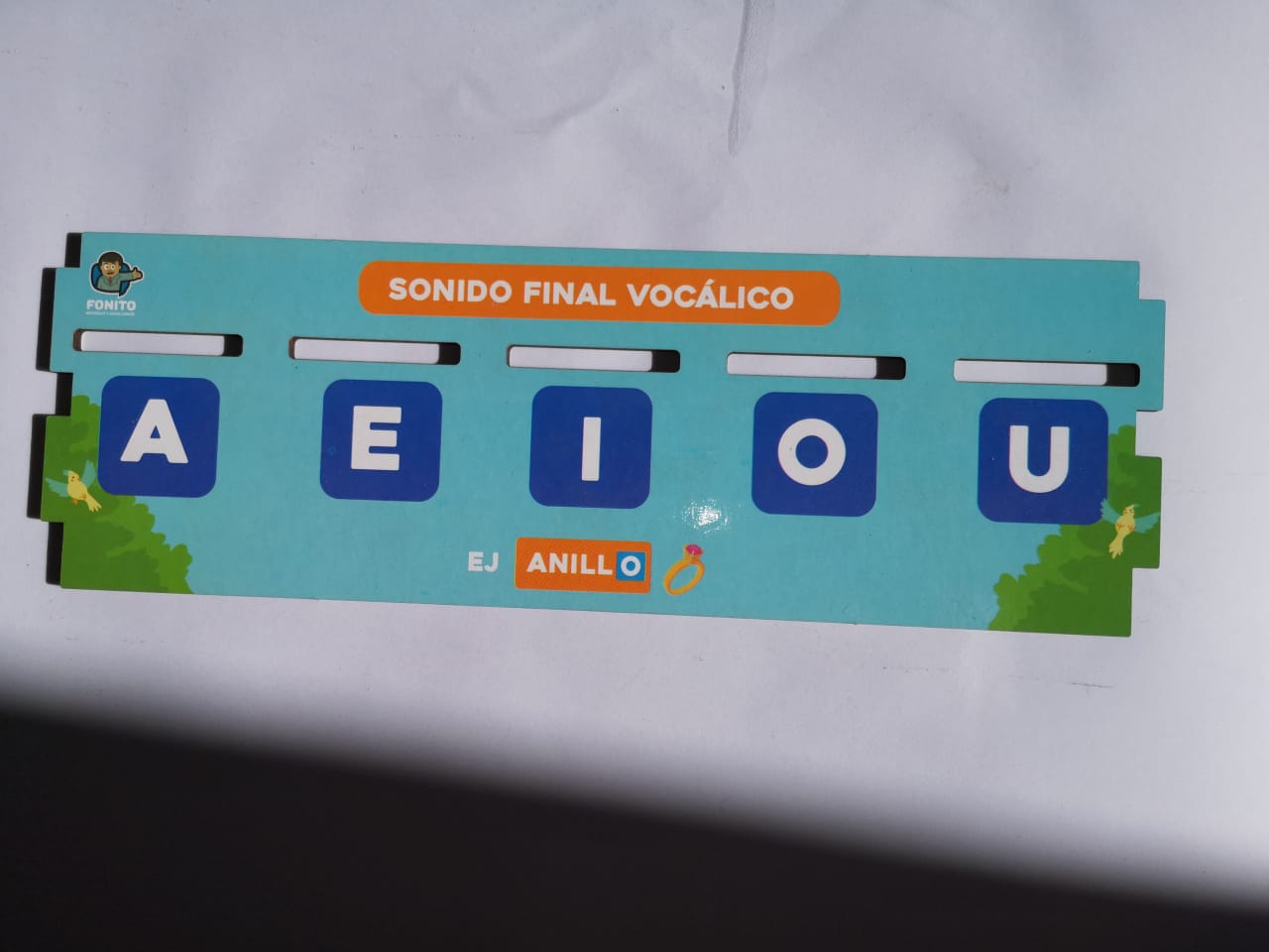 - 1 tapa reconocimiento fonema final vocálico con 20 fichas de reconocimiento fonema final vocálico.