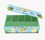 Contiene 1 caja de madera, 12 tapas y 240 fichas (4,5 x 4,5 cm) divididas en: