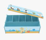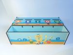 La tipología de las letras se encuentra en manuscrita minúscula, manuscrita mayúscula, imprenta minúscula e imprenta mayúscula. Contiene 1 caja de madera, 12 tapas y 240 fichas (4,5 x 4,5 cm) divididas en: